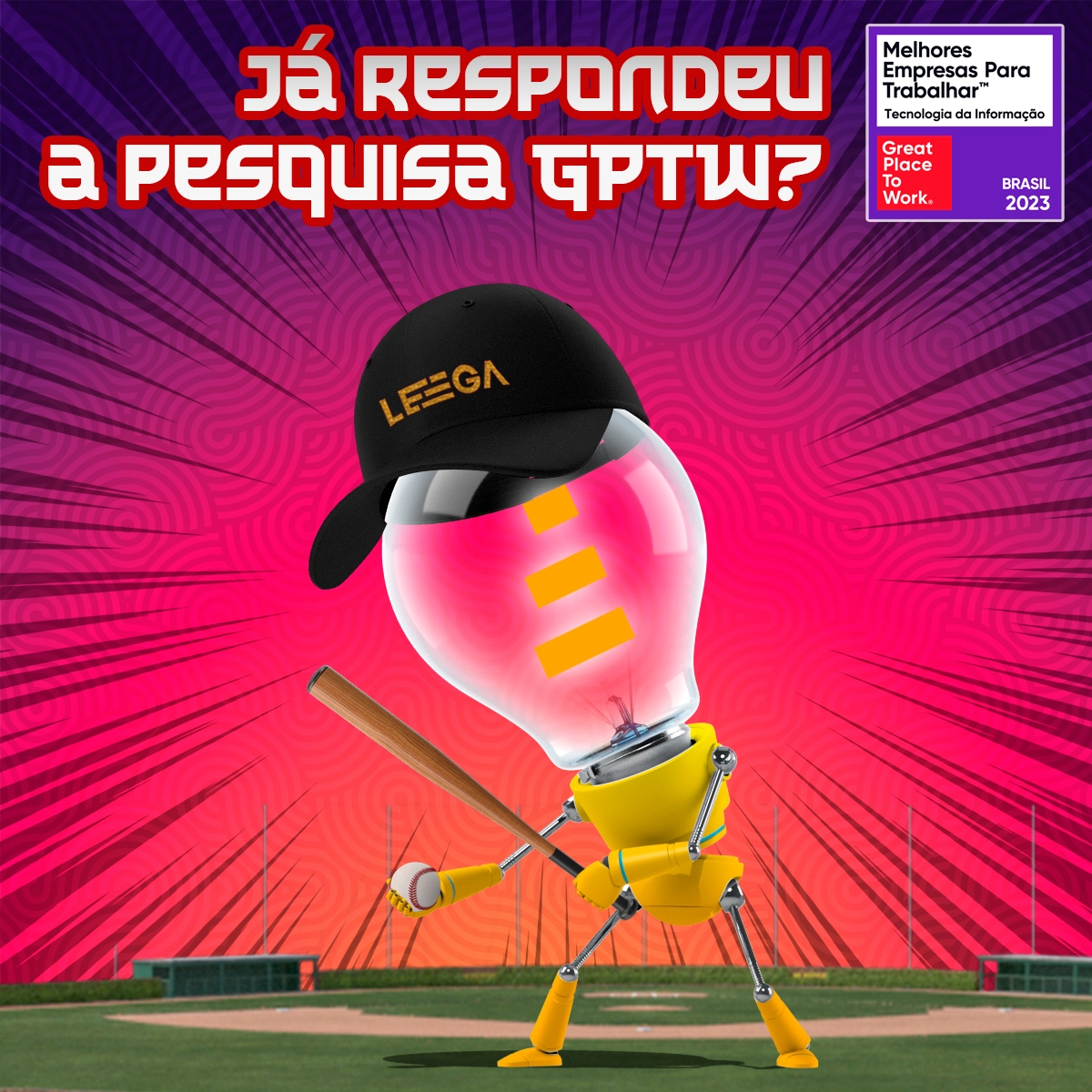 O resultado foi além do esperado: o personagem engajou a comunicação interna da Leega, deixando de ser apenas um modismo visual se tornando um mascote ativo, presente em diversos materiais. Com versões desenvolvidas em 2D e 3D, ele passou a circular pela empresa como uma extensão viva da marca.